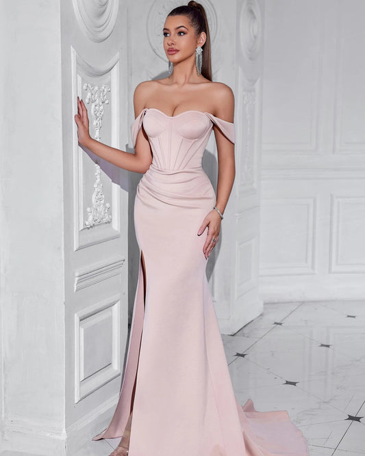 Abito Lungo Elegante con Spacco e Spalle Scoperte