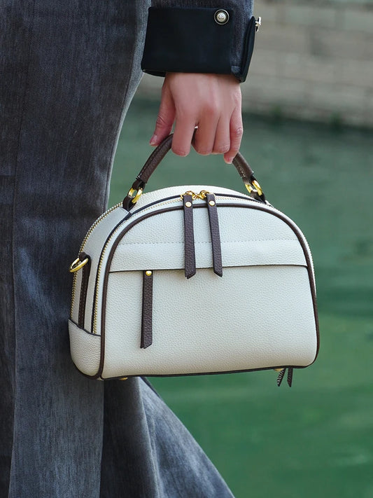 Borsa a Mano in Vera Pelle con Texture Elegante