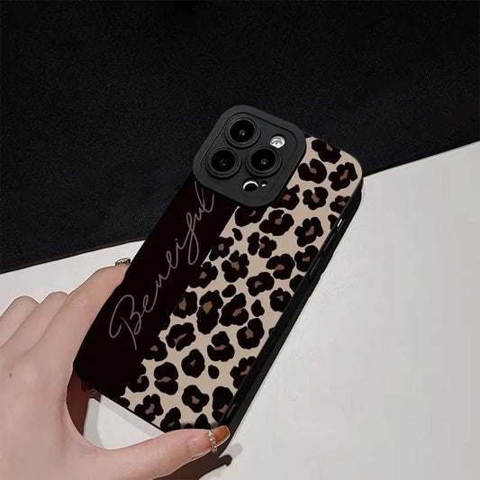 Cover per iPhone – Design Y2K con Lettere Inglesi e Motivo Leopardo