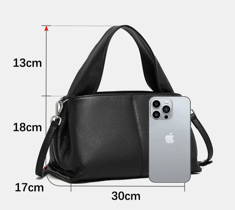 Questa borsa in vera pelle dal design morbido e avvolgente si distingue per la sua forma "dumpling" di tendenza, unita a un’estetica classica e raffinata. Ideale da portare a mano, a spalla o a tracolla, è pensata per donne che desiderano un accessorio pratico ma distintivo.