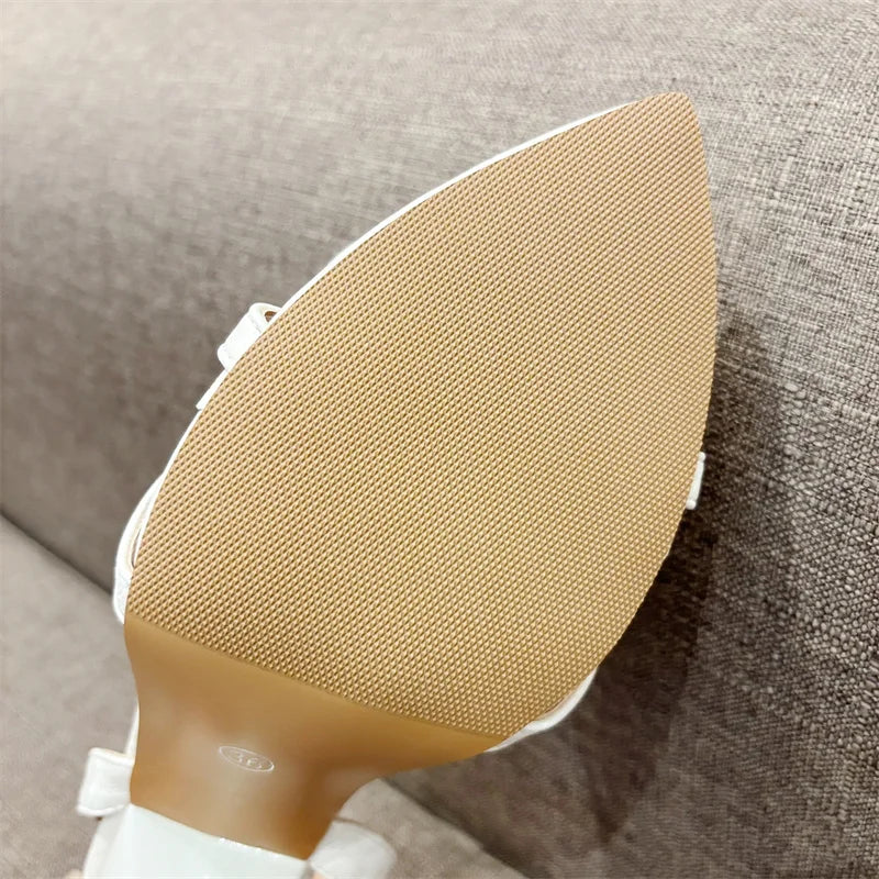 Inclusi cinturini sottili sul retro che mantengono il piede a posto con eleganza.
