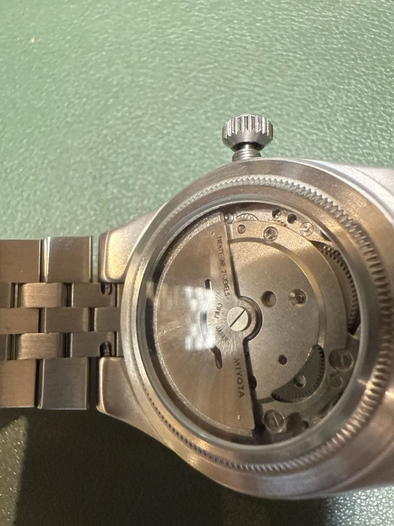 Movimento automatico Miyota (Giappone): fluido, affidabile e senza batteria.