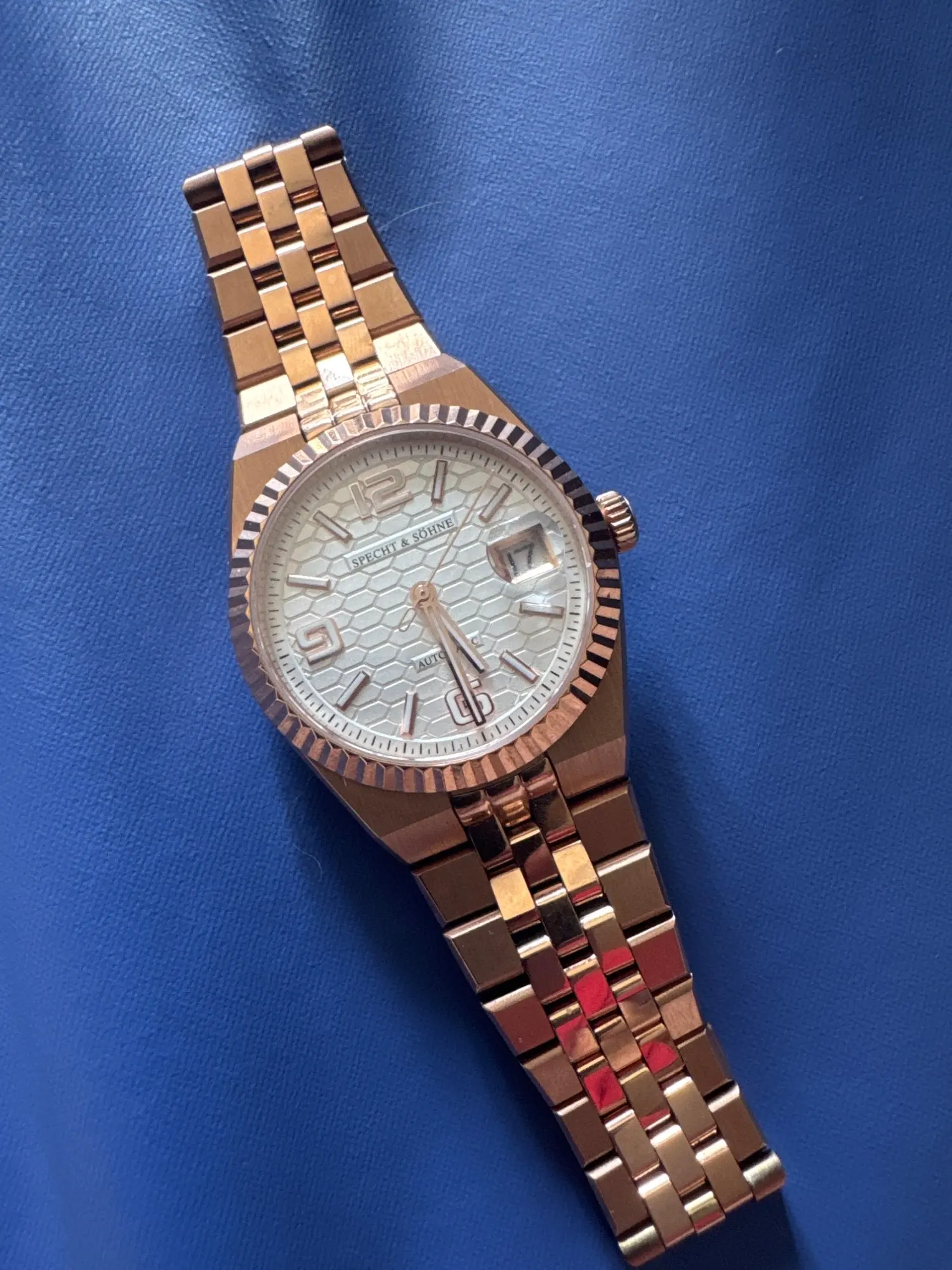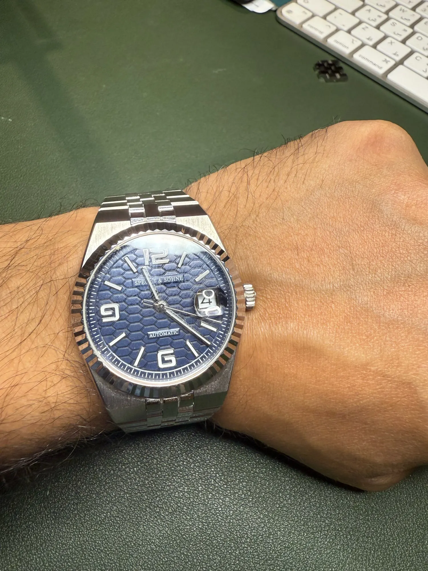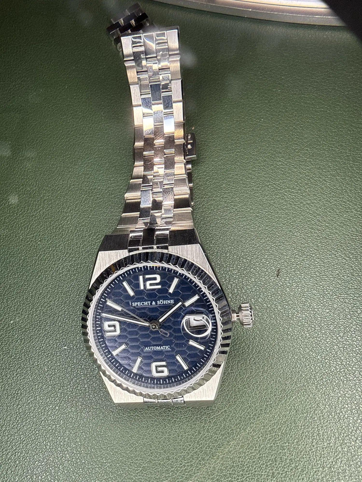 È un orologio assolutamente magnifico e ne sono molto soddisfatto. Personalmente, mi piacerebbe solo che Specht & Sohne utilizzasse le spine a vite invece di quelle a vite. Questo è l'unico neo che ho riscontrato acquistando questo orologio: i perni a vite sono decisamente molto più facili da rimuovere rispetto a quelli a vite.