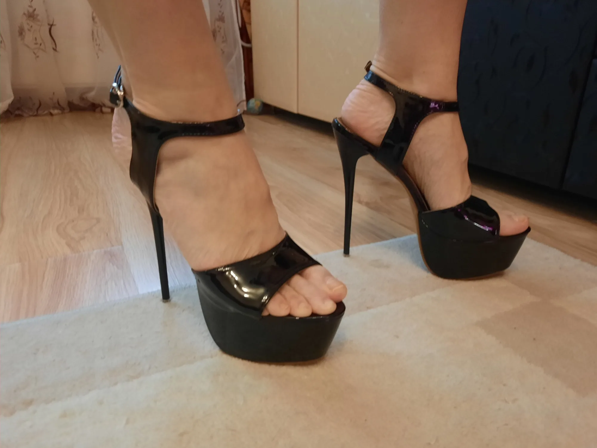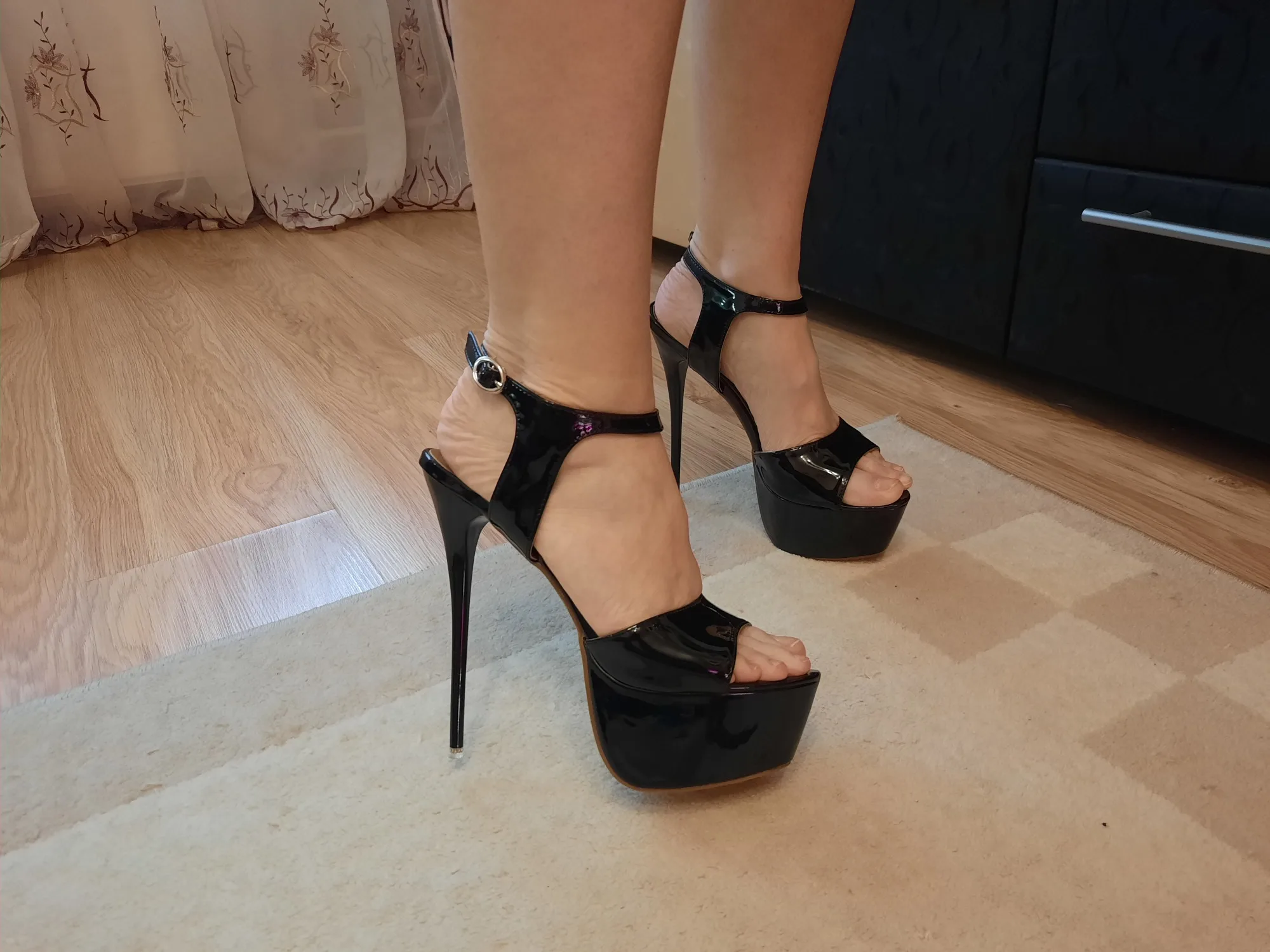 Atrévete a destacar con estos sandali platform in vernice nera dal design seducente: tacco sottile da 15 cm con plateau frontale di 5–7 cm e cinturino alla caviglia a chiusura fibbia. La tomaia in pelle verniciata (o PU di alta lucentezza) e il plantare in PU offrono comfort, mentre la suola in gomma garantisce grip e stabilità.