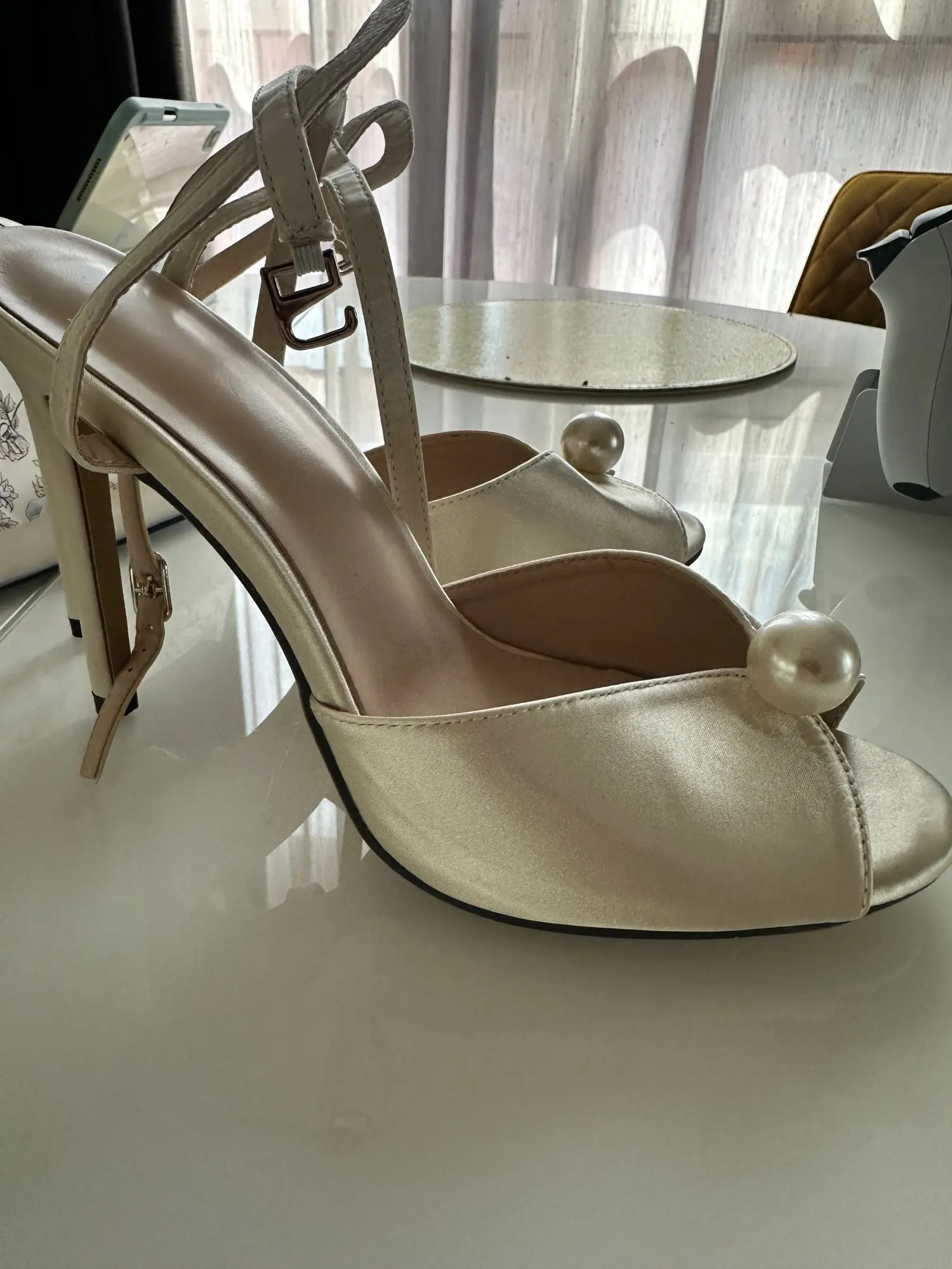 Entra nel mondo dell’eleganza estiva con questi raffinati sandali in seta con perla da donna. Il tacco alto 11 cm, sottile e slanciato, è perfetto per valorizzare ogni outfit formale, mentre la perla decorativa sulla punta aggiunge un tocco di charme sofisticato.